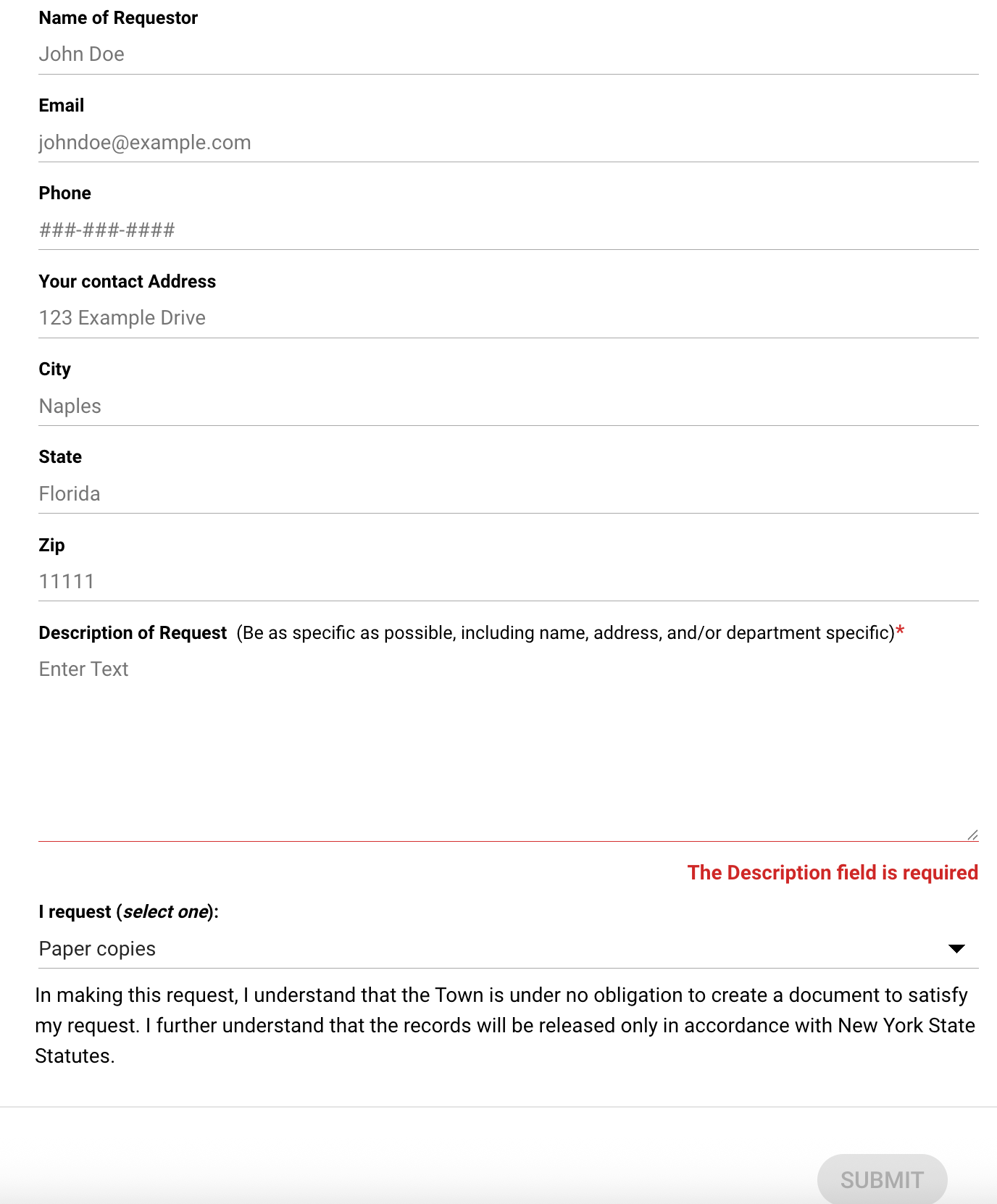 Henrietta’s FOIL portal aligns exactly with statutory minimum requirements and avoids unnecessary data collection.